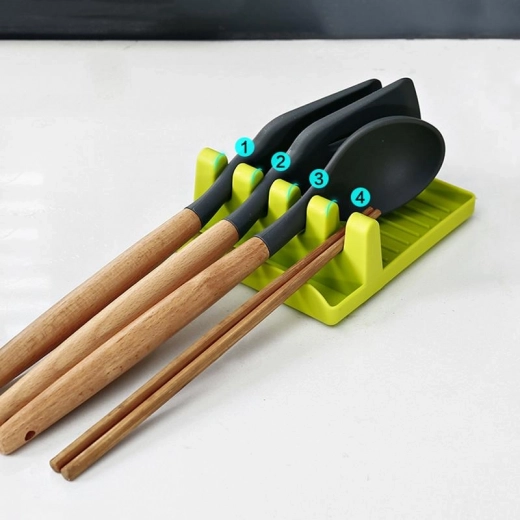 Odkládací držák obsahuje 4 zdířky, do kterých při vaření můžete odložit jakékoliv kuchyňské náčiní. Silikonový držák plní i funkci organizéru do šuplíku, kde Vám Vaše vařečky a naběračky perfektně uspořádá. Konec chaosu v šuplících a naházení všeho kuchyňského náčiní na jednu hromadu. Držák je protiskluzový, takže Vám na kuchyňské lince bude skvěle držet.