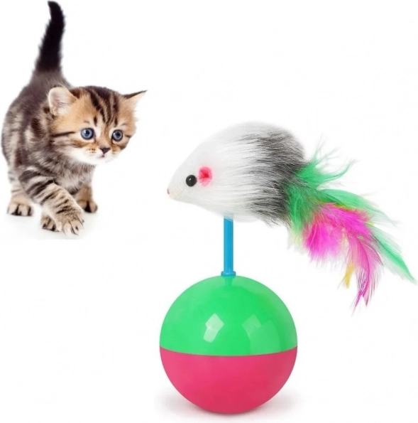 Zábavná hračka pro kočky s myškou na pružné tyčce a barevnými peříčky na stabilním míčku typu "waňka wstaňka". Poskytuje dlouhé hodiny zábavy, podporuje přirozený lovecí instinkt a díky samovztyčné základně se vždy vrací do svislé polohy.
