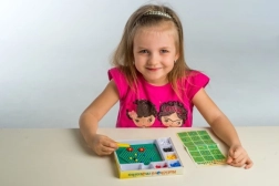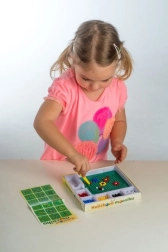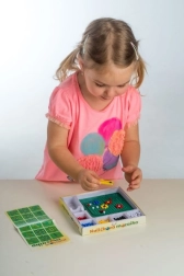 Tato mozaika je skvělou volbou pro první tvoření. Děti pomocí pinzety vkládají barevné kuličky do podložky a vytvářejí jednoduché i nápadité motivy. Aktivita podporuje trpělivost, koordinaci oko–ruka a rozvoj jemné motoriky.