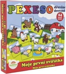Dřevěné pexeso – Moje první zvířátka TEDDIES je krásně ilustrovaná paměťová hra pro děti. Kartičky z kvalitního dřeva jsou příjemné do ruky, odolné a díky výrazným barvám a milým motivům zvířátek děti okamžitě zaujmou. Hra učí rozpoznávat tvary a barvy, rozvíjí logické myšlení i trpělivost.