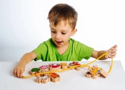 Kvalitní dřevěná provlékačka učí děti rozpoznávat česká zvířátka, rozvíjí jemnou motoriku a posiluje soustředění a zručnost.