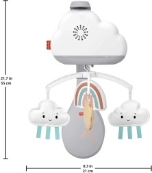 Přineste do dětského pokoje Fisher-Price Dětský kolotoč s hudbou a nočním světlem s motivem mraků a jemnými barvami, který vyzařuje moderní design a harmonii. Tento kolotoč neboli uklidňovač je perfektní pro malé děti, které potřebují pomoc při usínání.