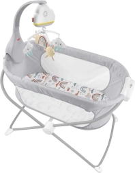 Fisher-Price Dětský kolotoč je uklidňující hudební kolotoč s roztomilými hračkami ve tvaru mráčků a sluníček, který pomáhá dětem usínat a relaxovat.
