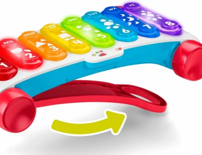 Objevte zábavný a vzdělávací svět hudby s tahacím xylofonem FISHER‑PRICE. Tento velký interaktivní xylofon má 8 podsvícených tlačítek, která spouští více než 60 zvukových aktivací – melodie, zvuky a mluvené věty. Díky skládací rukojeti se hodí pro hraní vsedě i při chůzi a nabídne 3 úrovně učení s výukou písmen, čísel, tvarů a barev. Podporuje vícejazyčnou zábavu včetně češtiny a angličtiny.