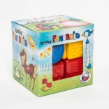 Tato didaktická sada kostek je ideální volbou pro první stavění. Díky čtyřem tvarům a barvám děti poznávají barvy, tvary a učí se koordinaci ruka–oko. Kostky jsou lehké, bezpečné a příjemné do ručky.