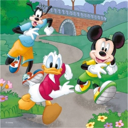 Objevte kouzlo skládání s oblíbenými postavičkami od DISNEY. Sada tří puzzle po 55 dílcích přináší sportovní dobrodružství MICKEYHO, MINNIE a jejich kamarádů – běh, basketbal i jízdu na kole. Děti si při skládání procvičí trpělivost, logické myšlení a koordinaci oko–ruka.