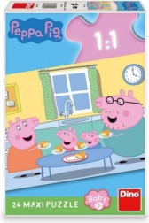 Užijte si radost ze skládání s oblíbenou postavičkou PEPPA PIG. Barevné maxi puzzle 24 dílků s motivem rodinné svačiny potěší malé děti od 2 let. Extra velké dílky se snadno drží, pomáhají rozvíjet jemnou motoriku, pozornost a trpělivost. Vyrobeno v ČR z bezpečného, netoxického a odolného kartonu.