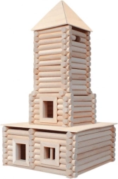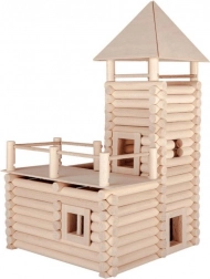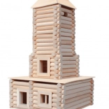 Stavebnice je vyrobena z kvalitního masivního bukového dřeva, které zajišťuje odolnost a autentický vzhled modelů.