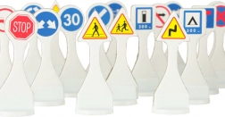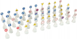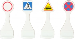 Široký výběr nejpoužívanějších značek v různých tvarech a barvách umožní dětem vytvářet skutečné dopravní situace a učit se bezpečně hrou.