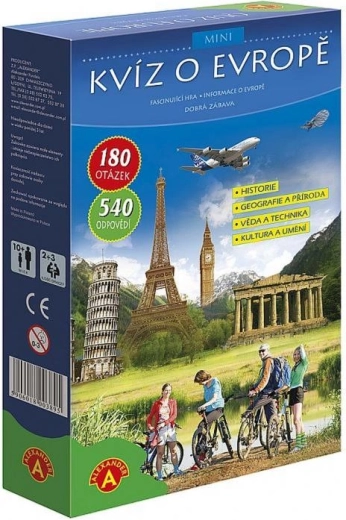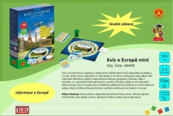 Kvíz o Evropě Mini je svižná společenská hra s otázkami z několika tematických okruhů. Hráči si připomenou hlavní města, vlajky, památky, řeky, pohoří i významné osobnosti a události, a to vše v kompaktním formátu ideálním na cesty.