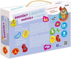 - Velké barevné destičky s obrázky, český a slovenský návod, krabice s uchem