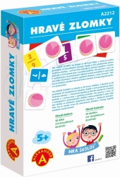Hra školou – Hravé zlomky je ideální pomůckou pro první seznámení se zlomky. Děti spojují poloviny kartiček – jednu s číselným zlomkem a druhou s obrázkovým znázorněním. Díky tvaru puzzle okamžitě ověří, zda je přiřazení správné, a učí se tak formou hry bez stresu.