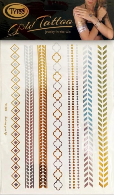 Objevte kouzlo zlatých tetovacích náramků TyToo, které ozdobí vaše zápěstí, paži či kotník. Tato tetování jsou jedinečným módním doplňkem, který přidá vašemu vzhledu nádech luxusu.