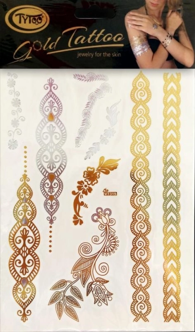 Zlaté tetovací náramky TyToo jsou skutečným šperkem pro vaši pokožku. Snadno a rychle aplikovatelné, vhodné pro různé části těla.