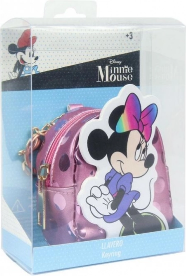 Hravá klíčenka s ikonickým motivem MINNIE MOUSE kombinuje roztomilý design a užitečnost. Mini batůžek s lesklým povrchem a barevnou mašlí nabízí drobný úložný prostor na mince, sluchátka nebo malé poklady. Díky zipu vše bezpečně drží uvnitř.