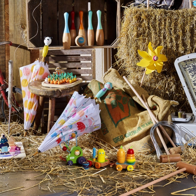 - Skládací hračka: Hruška skrývá červíka, králík se schovává v mrkvi.