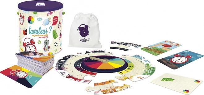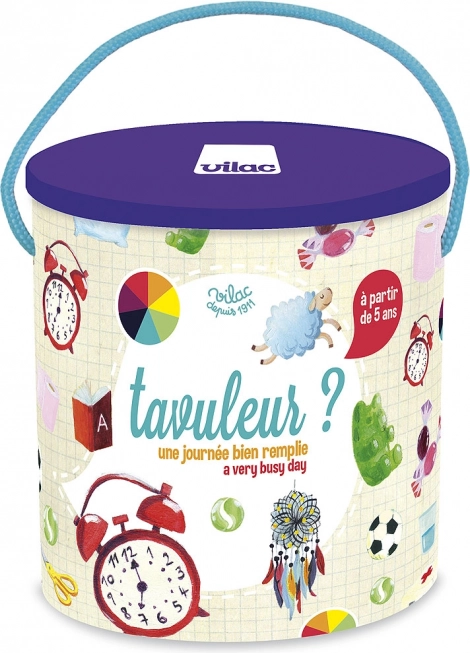Vilac přináší dětem výzvu, jak nejlépe naplnit svůj den. Tato hra nejenže učí poznání času na klasickém ciferníku, ale také přiměřeně rozvíjí další poznávací schopnosti. Děti se při hraní mohou naučit poznávat tvary a barvy a zároveň se soustředit při skládání hodinového diskového ciferníku.