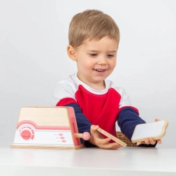 Toaster je vyroben z odolného dřeva se zaoblenými hranami pro bezpečné hraní. Vhodné do každé dětské kuchyňky.