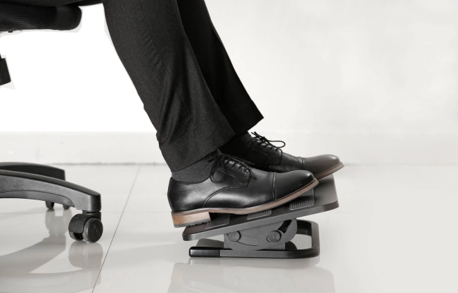 Velkorysé rozměry 380 × 300 mm poskytují dostatek prostoru i pro větší chodidla. Podnožka pomáhá udržet správné prokrvení nohou, snižuje únavu a zvyšuje komfort při dlouhodobém sezení doma i v kanceláři.