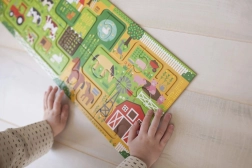 Zábavné a vzdělávací puzzle pro nejmenší. Složte 10 velkých dílků a vydejte se prstem po bludišti napříč farmou. Děti při hře rozvíjejí jemnou motoriku, soustředění a postřeh, když hledají 20 různých předmětů na obrázku. Puzzle je vyrobeno z recyklovaného papíru a potištěno barvami na rostlinné bázi, splňuje přísné bezpečnostní standardy a je ideální pro děti od 2 let.