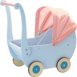 Petitcollin Dřevěný kočárek modrý (pro panenku do 40 cm)