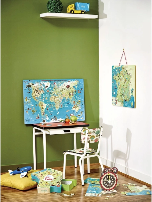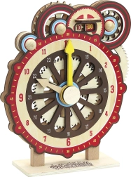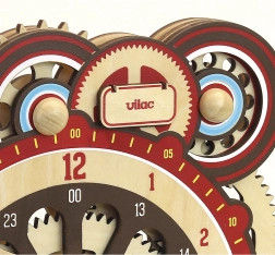 Dřevěné didaktické hodiny VILAC děti zábavnou formou provedou světem času. Analogový ciferník doplňuje kotoučový číselník, který napodobuje digitální zobrazení a usnadňuje orientaci. Obě ručičky i číselník jsou vzájemně propojeny přesnými převody, takže mechanika věrně odpovídá skutečným hodinám – to pomáhá lépe porozumět vztahu mezi minutami a hodinami.
