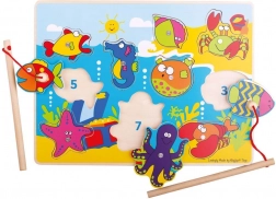 Děti mohou s radostí lovit 10 různých mořských živočichů pomocí dvou magnetických prutů. Každý hráč si může počítat skóre a soutěžit, kdo uloví nejvíce rybek. Následně se živočichové vrací na své místo a hra se promění v puzzle.