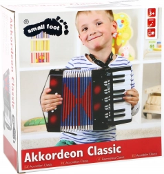 Objevte kouzlo hudby s dětskou harmonikou small foot Classic – ideální pro první hudební krůčky. Díky nastavitelným ramenním popruhům je hraní pohodlné a děti se mohou plně soustředit na rytmus a melodii. Leskle lakované provedení a více kláves podporují rozvoj jemné motoriky i kreativity. Nejedná se o hudební nástroj, ale o hračku.