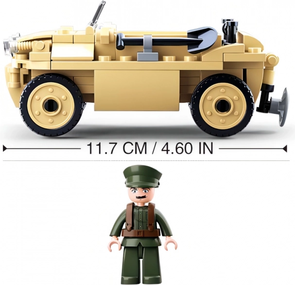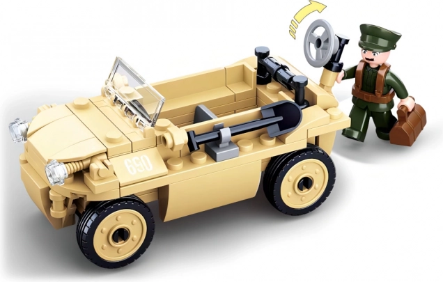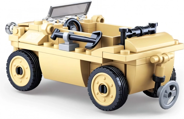 Stavebnice nabízí detailní repliku německého obojživelného vozu, obohacenou o realistické prvky jako čelní sklo a pohyblivá kola.