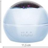 Uklidňující noční lampička s projektorem vytváří na stěnách a stropě magickou projekci hvězdné oblohy nebo podmořského světa. Díky otáčející se kopuli, 4 barvám světla (zelená, modrá, bílá, červená) a tichému provozu pomáhá dětem snadněji usnout a promění pokoj v útulné místo pro odpočinek.