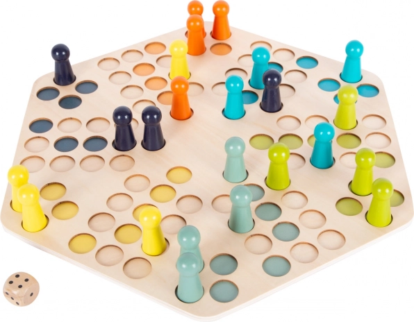 Tato klasická společenská hra v kvalitním dřevěném zpracování je navržena až pro 6 hráčů, takže se do zábavy zapojí celá rodina i přátelé. Velkoformátová deska se snadno přehledně ovládá a barevné figurky s větším průměrem skvěle padnou i do menších či nejistých prstů.
