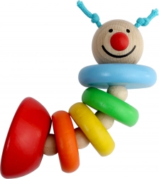Tato barevná dřevěná housenka je ideální první hračka pro nejmenší. Díky propojení dílků na gumičce se snadno ohýbá, kroutí a vrací zpět, což děti motivuje k aktivnímu zkoumání a tréninku koordinace rukou a očí. Kompaktní velikost skvěle padne do dětské ručky.