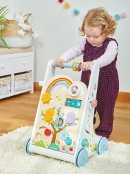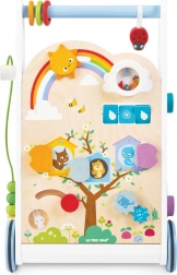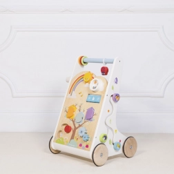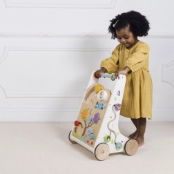 Dřevěné chodítko s aktivitami je koncipováno tak, aby bylo nejen zábavné, ale i vzdělávací. S jeho pomocí se děti naučí nejen chodit, ale rozvíjejí i své smyslové dovednosti.