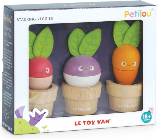 Rozkošná sada dřevěných květináčků se zeleninou od LE TOY VAN podporuje jemnou motoriku, koordinaci ruka–oko i představivost. Děti mohou mixovat a skládat jednotlivé díly do mrkve, ředkve a řepy nebo vytvářet vlastní kombinace. Hračka je vyrobena z udržitelného dřeva, má plstěné lístky a je ručně domalovaná netoxickými barvami na vodní bázi.