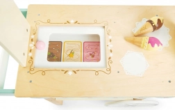 Vozík nabízí posuvné dveře k přihrádce na „led“ s ilustracemi příchutí, dva magnetické kornouty a pohyblivá kola, aby si děti mohly zahrát na zmrzlináře kdekoli. Podporuje sociální a verbální dovednosti, roli hrou rozvíjí fantazii a jemnou motoriku. Hračka získala prestižní ocenění za design, kvalitu a herní hodnotu.