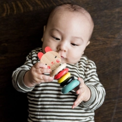Dopřejte svému miminku bezpečnou a smyslově podnětnou hračku. Dřevěné chrastítko zajíček vydává při jemném zatřesení příjemné klepání, které uklidňuje a podporuje vnímání zvuku. Díky kompaktním rozměrům se chrastítko skvěle drží a rozvíjí jemnou motoriku i koordinaci ruky a oka.