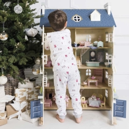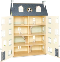 Palácový domeček pro panenky LE TOY VAN je výjimečná hračka a designový kousek v jednom. Na každé straně najdete množství oken, některá lze otevřít stejně jako nádherné vstupní dveře v královské modři. Osm stylových pokojů zdobí elegantní nástěnné dekorace a velké centrální schodiště sahající až do čtvrtého patra. Oddělitelná střecha odkrývá prostornou půdu přístupnou žebříkem – ideální na herní scénáře i jako úložný kout.