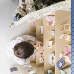 Domeček je ručně domalován ekologickými, vodou ředitelnými barvami a vyroben z vysoce kvalitního dřeva z udržitelných a obnovitelných zdrojů. Podporuje představivou hru, rozvíjí koordinaci ruka–oko a díky genderově neutrálnímu designu potěší všechny malé stavitele příběhů. Kompatibilní s nábytkem, panenkami a doplňky z kolekce Daisylane. Nábytek a panenky nejsou součástí balení.
