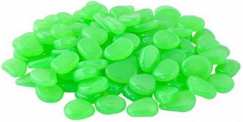 Tyto fluorescenční kamínky z kvalitního plastu se ve dne nabíjejí UV světlem a po setmění vyzařují příjemný zářivý efekt. Mají jemně zaoblené a leštěné hrany, jsou netoxické a vhodné i pro použití v akváriích.