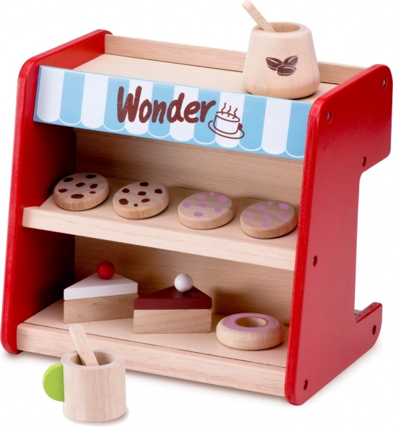 Dále je možné v policích vystavit dezerty dodávané se soupravou. Kávovar tak působí dojmem reálného kávového zařízení.