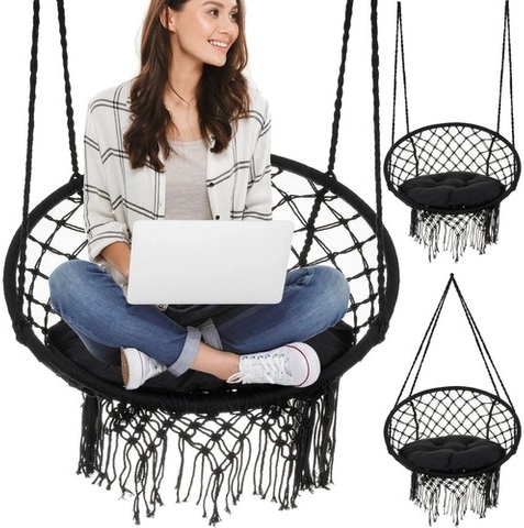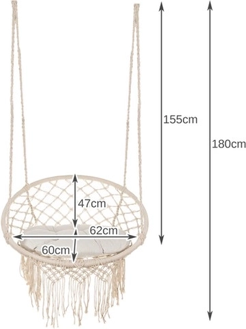 Díky robustní konstrukci a kvalitním materiálům je křeslo vhodné pro každodenní používání. Montáž je snadná – stačí zavěsit za dodané kovové kruhy na stropní hák nebo stojan.