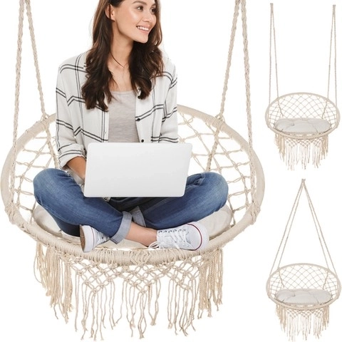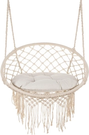 Tato béžová houpačka hnízdo v brazilském designu se skvěle hodí do obývacího pokoje, ložnice i na terasu či balkon. Vzdušný macramé vzhled s třásněmi vytváří útulnou atmosféru a pohodlný sedák s opěrkou podpoří relax u knihy i u kávy.