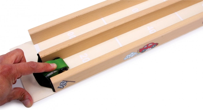 Tato elegantní dřevěná závodní dráha je skvělým způsobem, jak zapojit děti do interaktivní a zábavné hry. Obsahuje dvě dráhy, které jsou zdobeny barevnými ilustracemi, což přináší vizuální i herní zážitek.