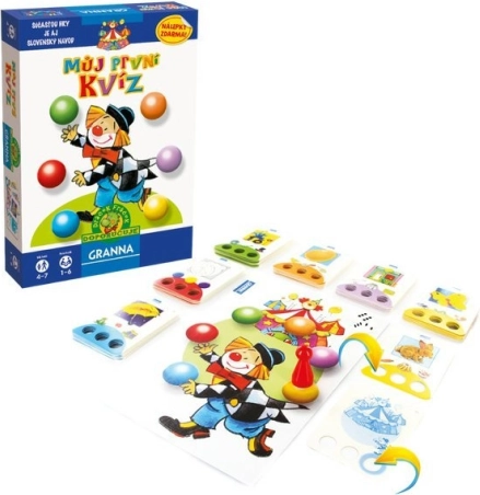 Hra Můj první kvíz přináší jedinečné pojetí učení hrou. Děti vybírají odpovědi vsunutím prstíku do otvoru pod zvoleným obrázkem a po otočení karty ihned vidí, zda odpověděly správně. Barevné ilustrace a jasné zadání úkolů udržují pozornost a motivují k dalšímu objevování.