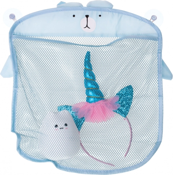 Modrý koupelnový organizér na dětské hračky se zvířátkem. Rychlé schnutí, pevné přísavky, snadná údržba a univerzální využití. Pořádek v koupelně snadno.