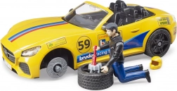 Žlutý sporťák s číslem 59 a odnímatelnou střechou přináší závodní vzhled i funkce. Ideální pro servisní i závodní scénáře.