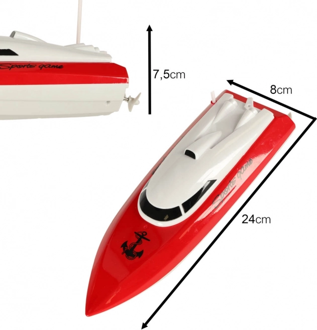 Díky délce 24 cm a odolnému plastovému tělu je loď snadno přenosná, rychle připravená k plavbě a ideální do bazénu či na rybník.