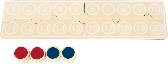 Barevné žetony a přehledná deska s čísly 1–20 umožňují dětem snadno skládat příklady a vidět výsledky před očima.