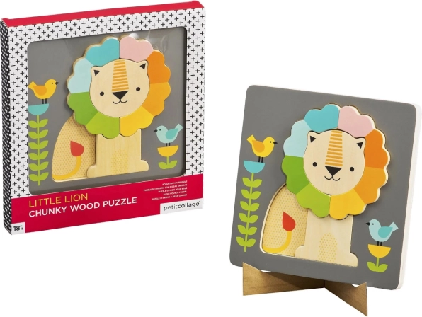 Postavte si přátelského lva s veselou duhovou hřívou s tímto dřevěným puzzlem od Petit Collage! Skvělé pro malé děti, díky pěti robustním dřevěným kouskům lze snadno vytvořit barevného lvího kamaráda.