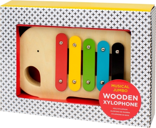Roztomilý xylofon ve tvaru slona je skvělým úvodem do světa hudby pro nejmenší. Díky kompaktnímu tělu se snadno drží a přenáší. Nabízí 5 barevných kovových klapek, paličku s elastickým úchytem a je vyroben z FSC dřeva s netoxickými barvami na vodní bázi. Ideální pro děti od 18 měsíců, podporuje rytmus, koordinaci ruka–oko a sluchové vnímání.